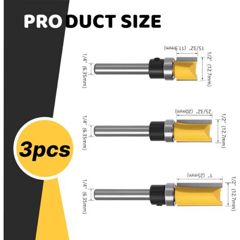 Fraise Pour Défonceuse Lot De 3 Fraises à Copier 8mm Avec Roulement - 4 Flûtes Fraise à Copier Application : Fraise pour affleurer de toupie professionnelles, excellente concentricité pour des coupes rapides, lisses et précises pour les travaux de stratifié et de gabarit, pour couper avec précision les bords du bois. Fraises professionnelles pour le travail du bois. La structure est simple et facile à utiliser. Caractéristiques : Fraise à cannelure droite, avec coupe-bord double et roulement à billes remplaçable, fonctionnement en douceur, excellente concentricité, pour la finition des bords. Large gamme d'applications : le fraise a copier coupe tous les matériaux de composition, panneaux de particules, contreplaqué, bois dur et tendre, MDF et autres panneaux solides, adaptés à tous les types de coupe-bois. Sollbry 4 Pcs Set Fraise Defonceuse 8mm Tige, Fraise a Copier a Bois... 4 Pcs Set Fraise Defonceuse 8mm Tige, Fraise a Copier a Bois, fraises pour défonceuses Avec Roulement Supérieur, Fraise pour Affleurer, pour Menuiserie Bricolage de Coupe Caractéristiques: - Revêtement résistant à l'usure et à la chaleur et roulements à billes de haute qualité pour une coupe à ras précise des chants en bois. 8mm Tige Routeur Bit CNC Fraise, Fraise à bois raboter outil de travail... Matériel de haute qualité : tête de coupe affleurante en alliage YG8, corps de coupe en acier au carbone 45 #, surface revêtue d'un revêtement résistant à la chaleur, performances durables, coupes précises pour les travaux de stratifié et de gabarit. Set Fraises Affleurer Roulement 7 Pièces Fraise Defonceuse A Bois à Tige 8mm Set, Fraises Droite Pour Défonceuses, Fraise A Bois A Tige 8mm Set Fraises Droite Pour Defonceuses Fraise A Rainurer A Double Tranchant Fraise A Copier Pour Tra 97362431 Alliage YG6 Acier Carbone