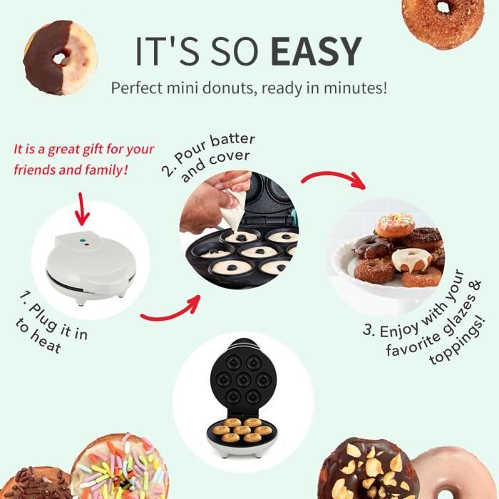Machine De Fabrication De Beignets Entièrement Automatique Commerciale... Cela fait un choix de cadeau idéal pour les amis et la famille qui aiment cuisiner; Ils apprécieront sûrement ce cadeau réfléchi. Vous pouvez facilement les essuyer avec un tissu humide et de l'eau, ne laissant aucune marque ni rayures. Il a une poignée cool et des pieds non glissants pour un fonctionnement et un stockage faciles., 2., Facile à nettoyer: les assiettes ont un revêtement sans bâton qui empêche les aliments de coller. Desserts avec une non bâton: les assiettes ont un revêtement sans bâton qui empêche les aliments de coller. Remplissez-les, gisez-les, virez-les, décorez-les de diverses garnitures, paillettes et bien plus Conception exquise: La conception est raffinée, vous permettant de vérifier votre nourriture sans renverser les garnitures. Duokon Machine à cupcakes Machine à Petit-déjeuner Multifonction Vous pouvez facilement les essuyer avec un tissu humide et de l'eau, ne laissant aucune marque ni rayures., 3., Chauffage double face: Le fabricant a une fonction de chauffage double face, vous permettant de cuire plus de desserts en moins de temps tout en réduisant la consommation d'énergie. 1., Design moderne à la mode: la machine à propose un design élégant et moderne, ce qui le rend adapté à toute cuisine. Vous apprécierez également des beignets uniformément cuits, croustillants et délicieux des deux côtés. Il a une poignée cool et des pieds non glissants pour un fonctionnement et un stockage faciles. Préparation Desserts Rapide Ereqeip Mini Donut Maker 7 | Mini Boulanger à Beignets,La Machine à Beignets Chauffante Double Face Antiadhésive Fait 7 Beignets En Quelques Minutes Pour La Machine Donuts électrique 220V